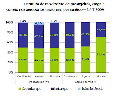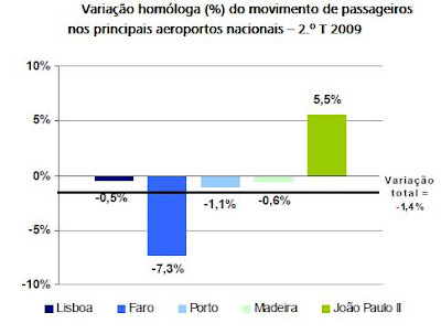 De entre os aeroportos do Continente, Faro foi aquele que denotou o decréscimo homólogo mais pronunciado (-7,3%) no movimento de passageiros no período entre Abril e Junho, sendo que Porto e Lisboa registaram descidas homólogas de 1,1% e 0,5%, respectivamente. No caso das regiões autónomas o cenário foi distinto: enquanto que a Madeira apresentou uma redução homóloga de 0,6% no movimento de passageiros, o aeroporto João Paulo II, nos Açores, foi o único dos principais aeroportos nacionais a denotar um crescimento (5,5%), face ao mesmo período do ano passado, no movimento de passageiros. O movimento de passageiros desembarcados superou ligeiramente o número de embarcados (3,68 e 3,59 milhões), sendo o número de passageiros em trânsito directo de 47 mil.