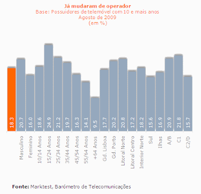 A análise teve como base indicadores do estudo Barómetro de Telecomunicações da Marktest para o universo composto pelos residentes em Portugal com 10 ou mais anos. (fonte: Marktest.com, Agosto de 2009)