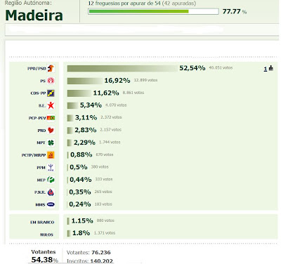 Eleições: resultados regionais quando faltam 12 freguesias